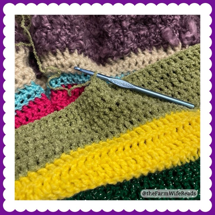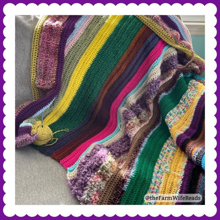 I’ve had to work on it in spells {my wrist does not always like prolonged crochet sessions, especially if it’s been a busy computer week}, but progress has been made and the afghan is very nearly complete. It’s heavy and comforting and colorful – and gloriously imperfect.