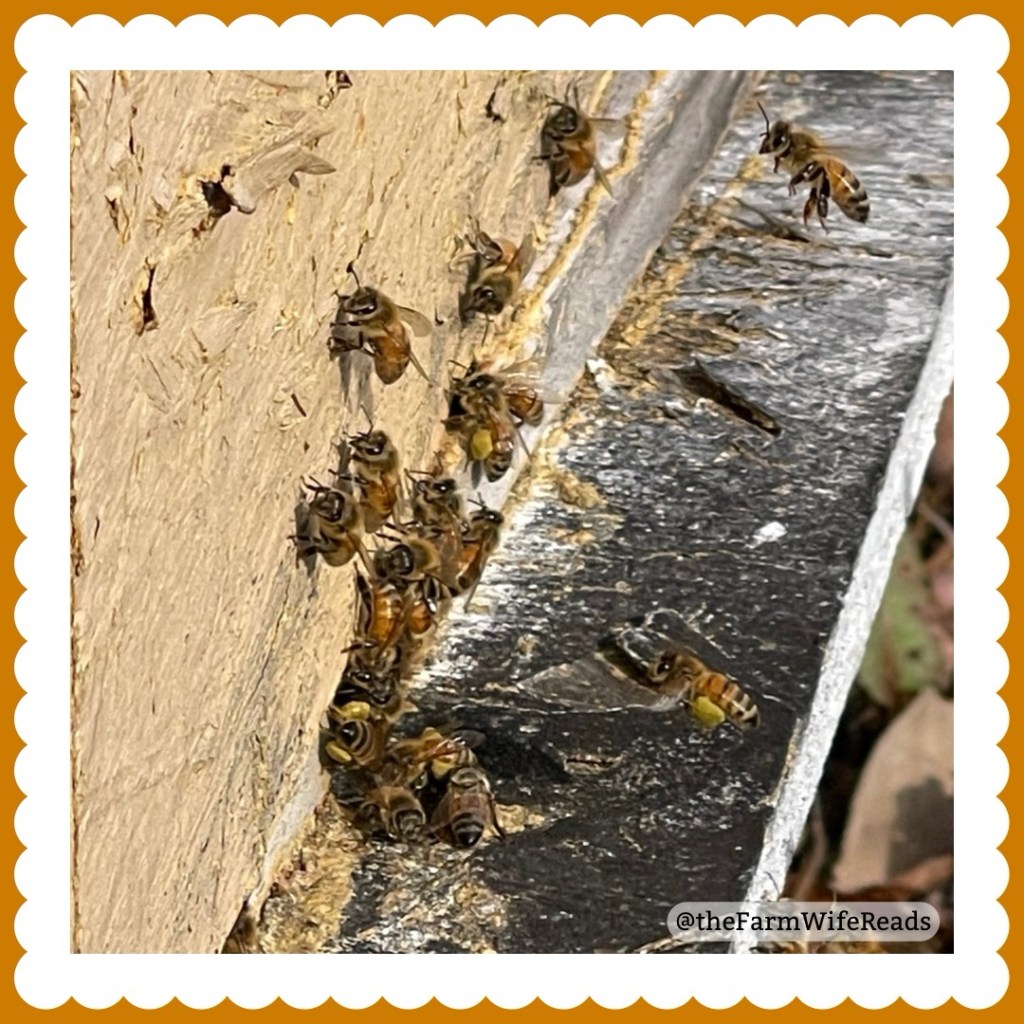 Over the weekend we did our routine golfcart ride-by to see how the girls are handling winter, and oh what a sight we saw! These little bees were busy!