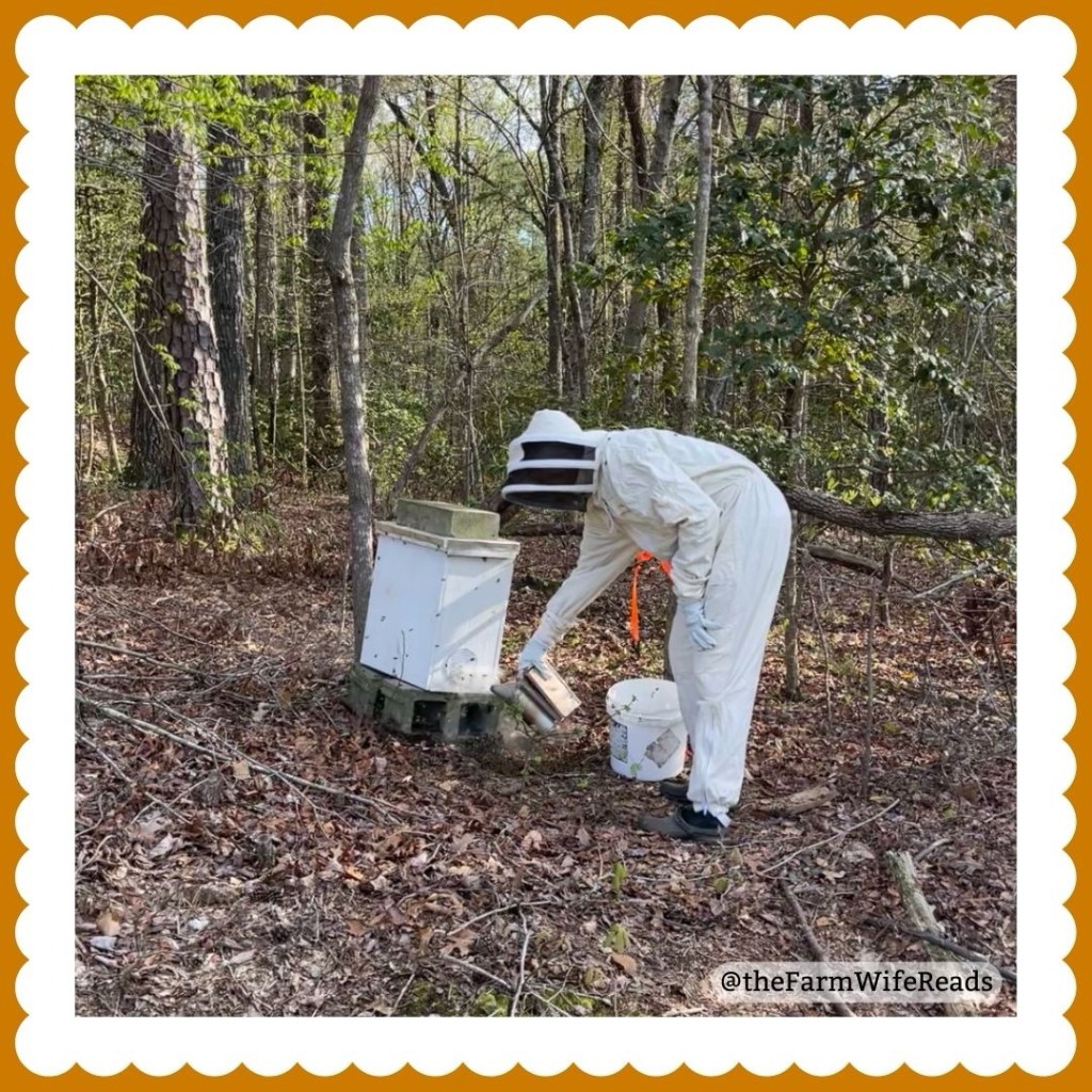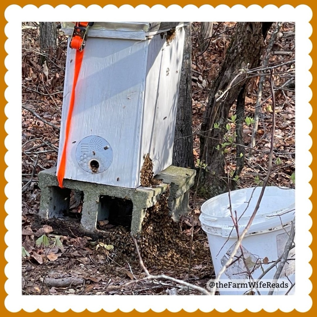 There were still a lot of bees outside the next evening, and since they were calling for overnight lows to dip into the low 40s, Mr. decided to move the bees inside himself.