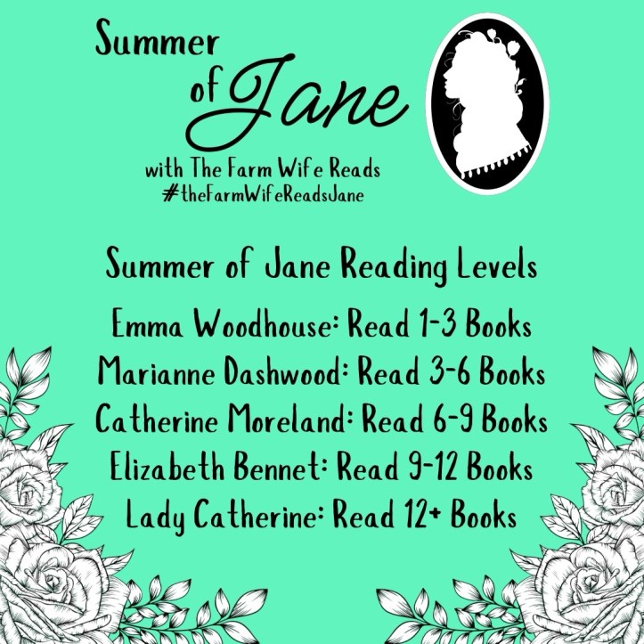The premise is very simple: Spend the summer with Jane Austen, whether reading her original novels or delving into the multitude of Austenesque reads available or picking up some nonfiction. The reading experience spans the entire summer, until the end of August, and there are multiple participation levels to choose from. {Lady Catherine had to the highest level, as she is a great proficient at all things}. If you’re on Instagram, you can share your reading progress there – or you can jump in the comments of update posts here. This is a low-stakes fun thing to add a little something special to your summer reading.