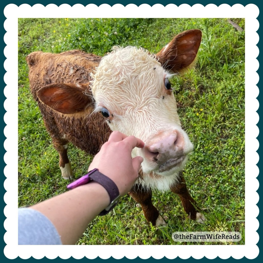 It’s always a fun day when the cows are in the field by our house. Now they’ve {finally} gotten used to me, they’re very curious and social. And I absolutely love being able to give the little bottle-baby nose scritches. {I got to feed him for a weekend, and he’s such a sweetheart!}