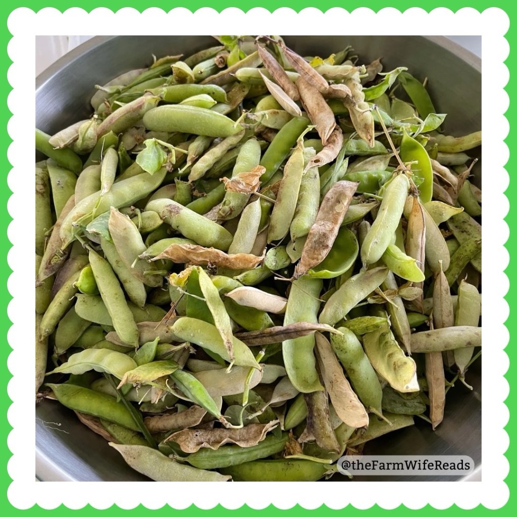 The peas had a good run, and when the vines started showing those “end of season” vibes, we harvested all the peas and cut the vines down to dry for mulch. My sugar snap peas decided they wanted to grow plump “actual peas,” so we treated them as such: an evening of shelling while watching Bridgerton and then a quick process, and we now have 9 cups of peas living in our freezer. It’ll be so nice to have that taste of summer this winter.