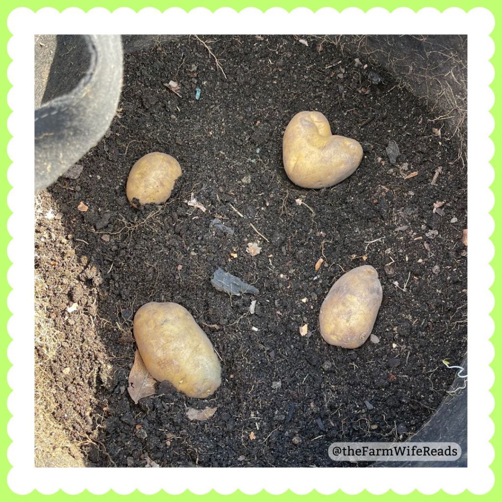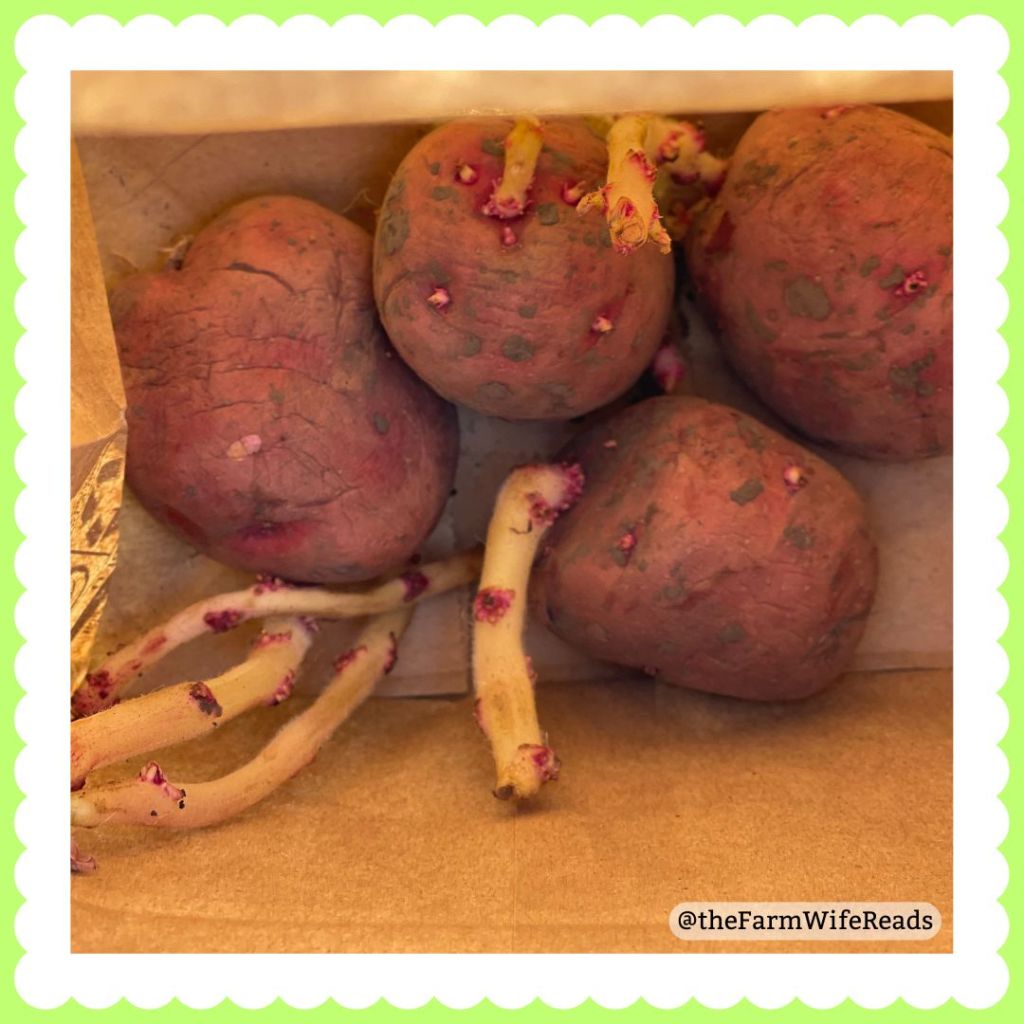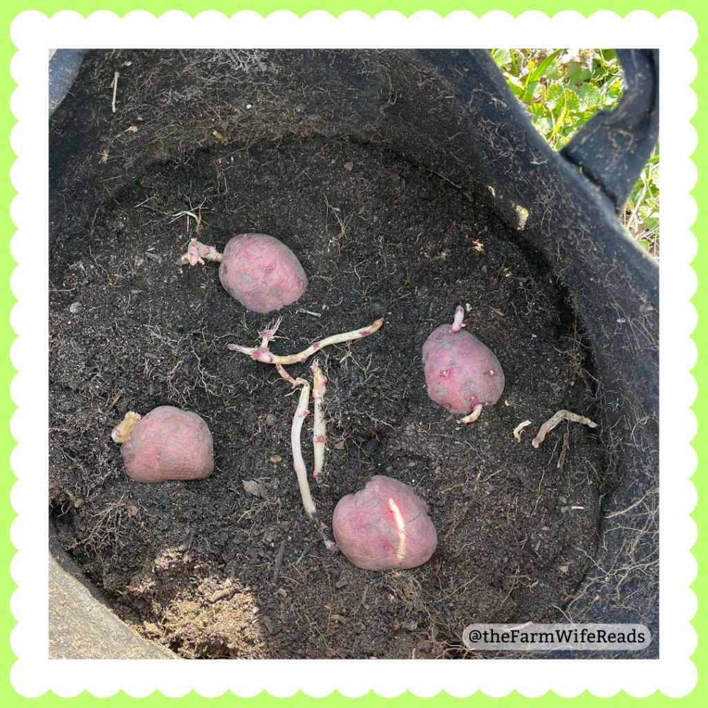 In addition to getting our tomatoes started, we finally found seed potatoes! Pickings were slim, but we were able to plant 3 grow bags of Kennebec potatoes, and 1 grow bag of the Norland Reds we grew before. Last year was a potato-less year in our garden, so we were very happy to get these.