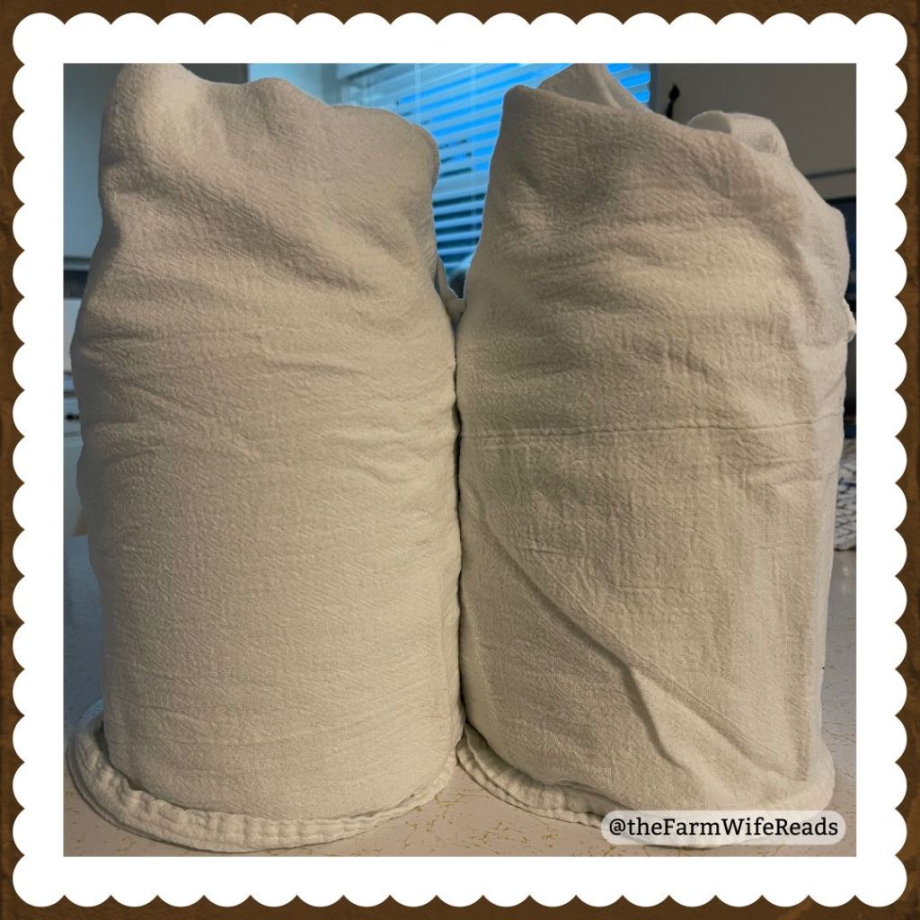 Place the lid on your jar, and wrap with a cloth to keep light from hitting the kraut, and place in a darkish location. Note: highly recommend placing your jar on a beach towel during this process, in case the juices seep out. It has happened. It is not fun. We keep ours in the office, because it’s on the north side of the house/not as bright, and they’re out of the way.