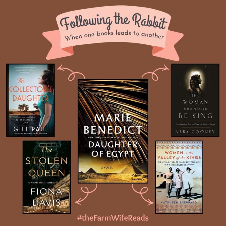 Have you ever picked up a book that reminded you of another book, which led to another book, and sent you down a rabbit trail of books? That experience prompted the creation of this feature. As an avid reader, this has happened to me more than once, most recently while reading a NetGalley of Marie Benedict’s new release Daughter of Egypt.